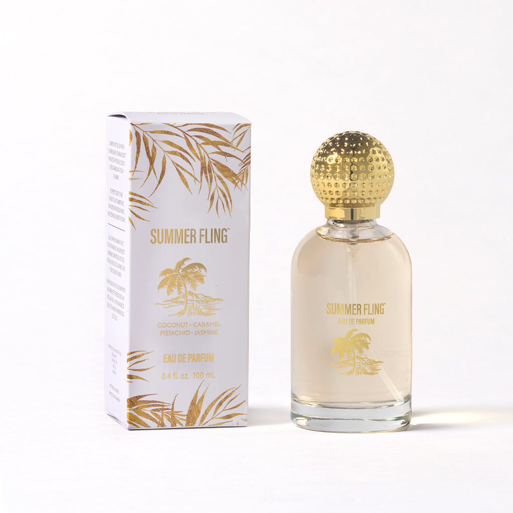 Summer fling™ eau de parfum, is a warm, beachy gourmand scent with notes of pistachio, coconut, salted caramel and a touch of jasmine.